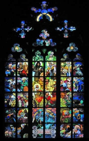 Foto: Alfons Mucha's stained glass window in St. Vitus Cathedral within Prague Castle, Clayton Tang, Courtesy of Wikipedia.