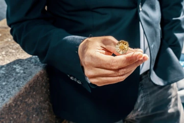 A bouquet of golden flowers for a wedding anniversary