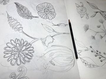 We study the real flower in different stages of development, filling the designer’s table with vases of flowers. Biological descriptions and sketching are a big part of this procedure. The flower is sketched out, taking into account its different stages of development.