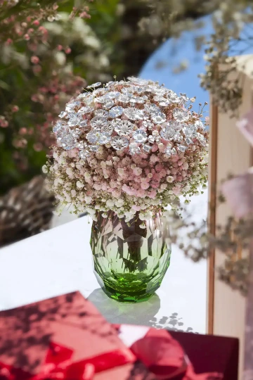 The Moser Caorle vase highlights wonderfully the fine beauty of GIYOU jewellery flowers and is suitable for Royal flowers or larger bouquets from 20 to 100 flowers.