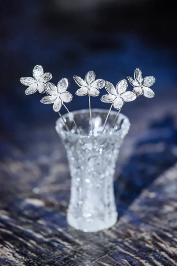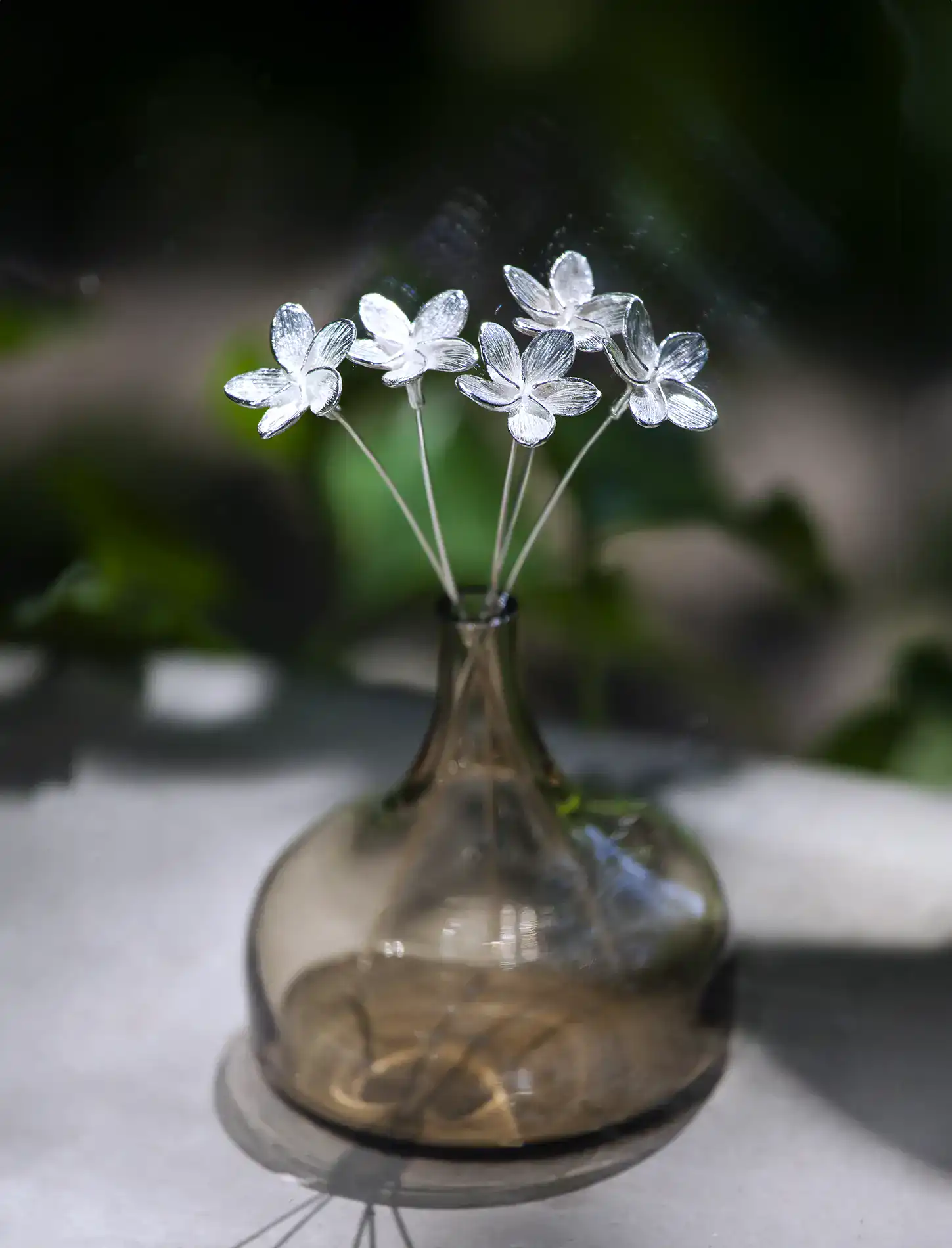 Sacred Balinese flower with five petals symbolizing the five elements of life. Symbol of love and purity. Iconic gift for a woman, anniversary gift, wedding gift, bridal bouquets. 925/1000 silver.