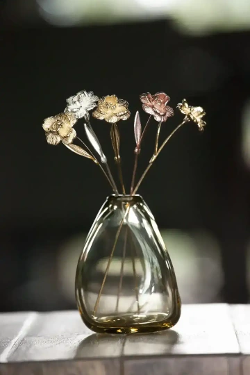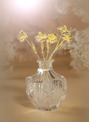 Give her a feeling of uniqueness with a bouquet of divine flowers. Luxury gift for women and celebrations, gift for the 5th wedding anniversary, unique vase decoration. 14K gold.