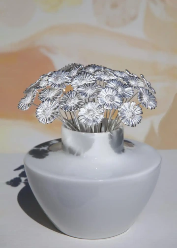 Large Bouquet of Thirty Silver Daisies, silver
