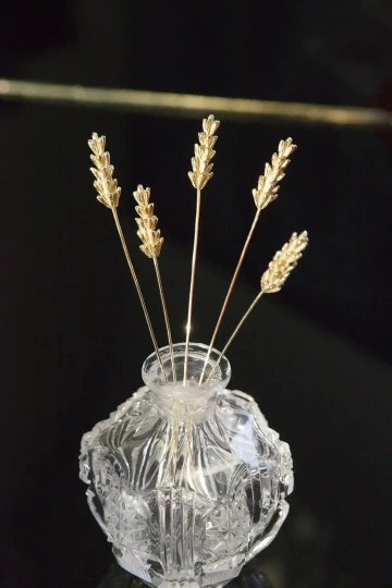 Golden lavender will delight you with its jewelry craftsmanship and delicacy. It is impressive on its own or in bouquets. A gift for a woman, decoration for a vase and bouquets. Czech flower jewelry, 14K gold.