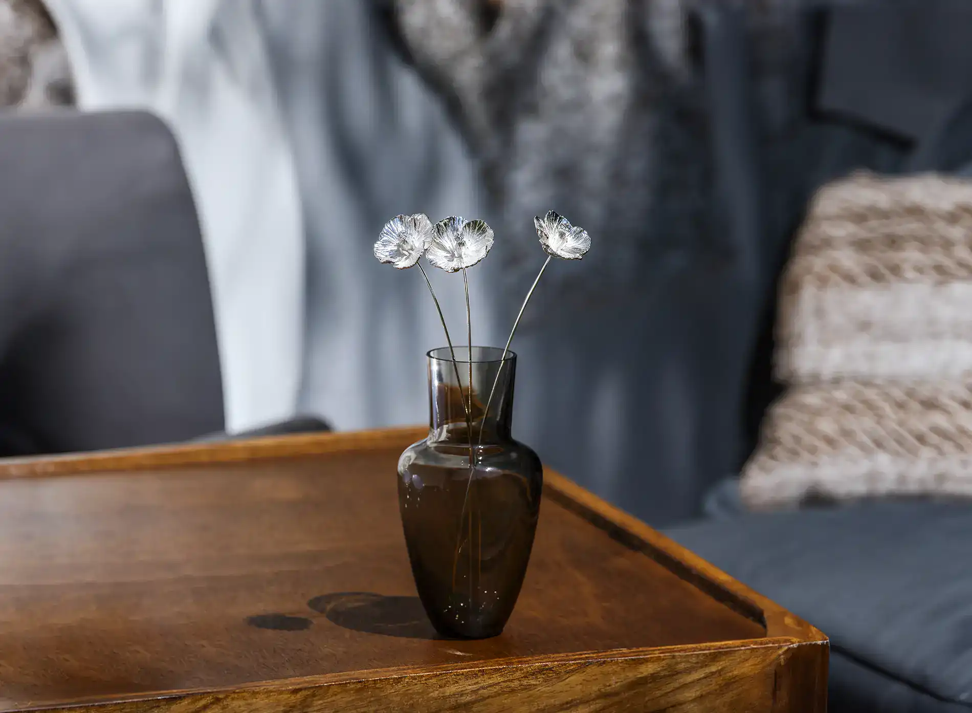 Silver poppy is a solitary flower for tall vases. It is beautiful on its own, in a bouquet of other poppies or with taller flowers, such as daffodils. Czech handmade jewelry production, 925/1000 silver.