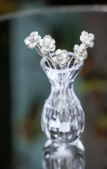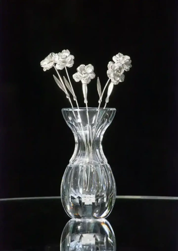 A jeweller’s bouquet of silver clove pinks (carnations), divine flowers for endless joy in a vase. Gift for a woman and unique moments. Handmade flower jewellery, silver 925/1000.