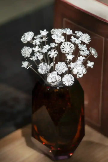 Bouquet Memory with 25 meadow flowers in silver for a gift for a 25th anniversary and silver wedding. Unique jewelry, 925/1000 silver, personal customer care, showroom, GIYOU GARDEN.