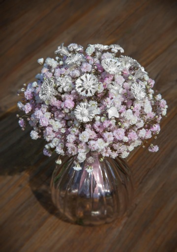 Silver flowers of a wedding bouquet have a longer stem than individual flowers (approximately 16,5 cm) to better hold in the hand. Wedding bouquets are made all year round.