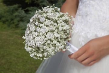 The wedding bouquets are produced and sold as custom made products. The specific details of the wedding bouquet must be clarified (in particular fresh or dried flowers, binding, etc.) to match your expectations. Before clarifying the details of the bouquet, you can make online only reservation of the bouquet.
