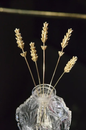 Zlatá levandule vás nadchne šperkařským řemeslem a jemností. Je působivá samostatně i v kyticích. Dárek pro ženu, dekorace do vázy a do kytic. České květinové šperkařství, zlato 14K.