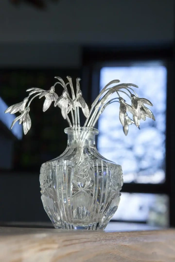 Kytice květinových šperků pro jedinečné okamžiky. Kytici sněženek předejte osobně jako právě natrhané luční květiny, ve váze nebo dárkové krabici. České květinové šperkařství, stříbro 925/1000.