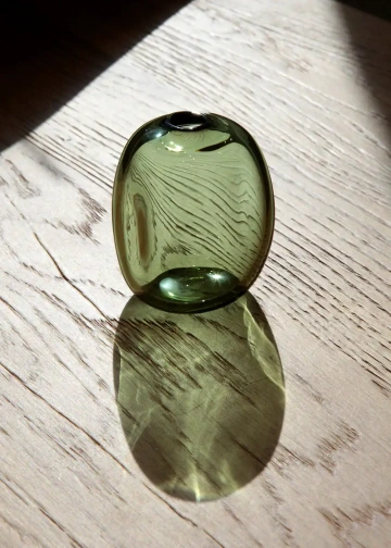 Jemná japonská váza má měkké křivky vytvořené technikami ručního foukání. Sugahara, jehož historie spadá až do roku 1932, usiluje o to, aby jeho ručně vyráběné skleněné produkty byli stejně teplé jako lidské tělo a vykouzlili vám úsměv na rtech, když je držíte v ruce. Obdélníkový kámen, barva lesní zelená, výška 7 cm.