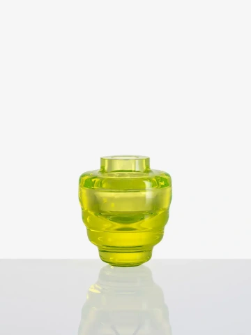 Vázička je ručně foukaná do dřevěné formy z alexandritového, aquamarýnového, uranového, eldorového či křišťálového skla. Unikátní jemný barevný přechod ve skle zapříčiní tzv. barvící sklářské rubíny, které se za tepla nabalují na základní baňku skla. Přesná barva, její sytost i rozložení po povrchu je u každé vázy jedinečné. Každý kus se fouká zvlášť a jeho konečná podoba se může lišit. Každý kus je signovaný autorem.
