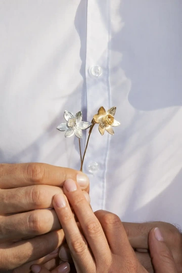 Zásnubní a snubní kytice narcisů, zlato 14K